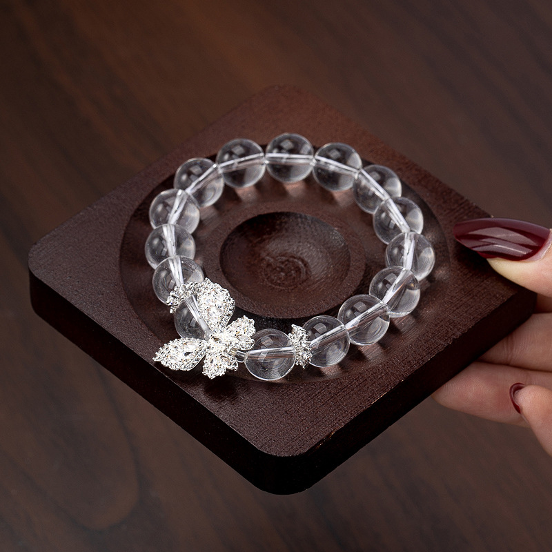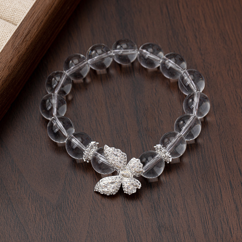 透明感溢れる天然水晶を使用したパワーストーンブレスレットです。 恋愛運を高める蝶々のチャームが幸せな出会いと愛情を運び込み、純粋な心で愛を育む力を授けてくれます。 水晶の浄化作用が心をクリアにし、真実の愛へと導きます。 アクセントの天然石が優しく輝き、身につけるだけで気品と華やかさを演出します。 大切な方への贈り物にも最適な一品です。