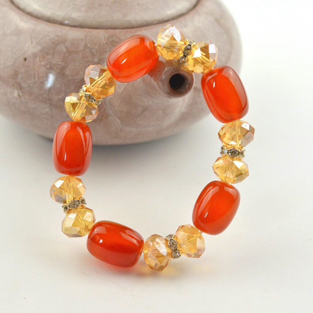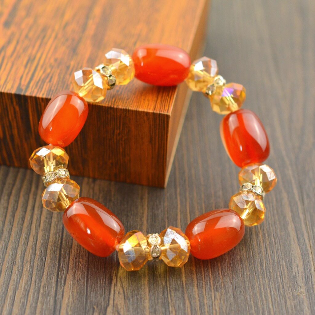 透明感のある天然石と輝く水晶を組み合わせたパワーストーンブレスレットの数珠です。 楕円形の艶やかな天然石と、カット加工を施した水晶が美しく調和し、手元を華やかに彩ります。 金具の装飾が上品なアクセントとなり、日常使いから特別な日まで幅広くお使いいただけます。 活力と情熱を高め、心身のバランスを整える効果が期待できる開運の数珠として、お守りとしてもおすすめの一品です。
