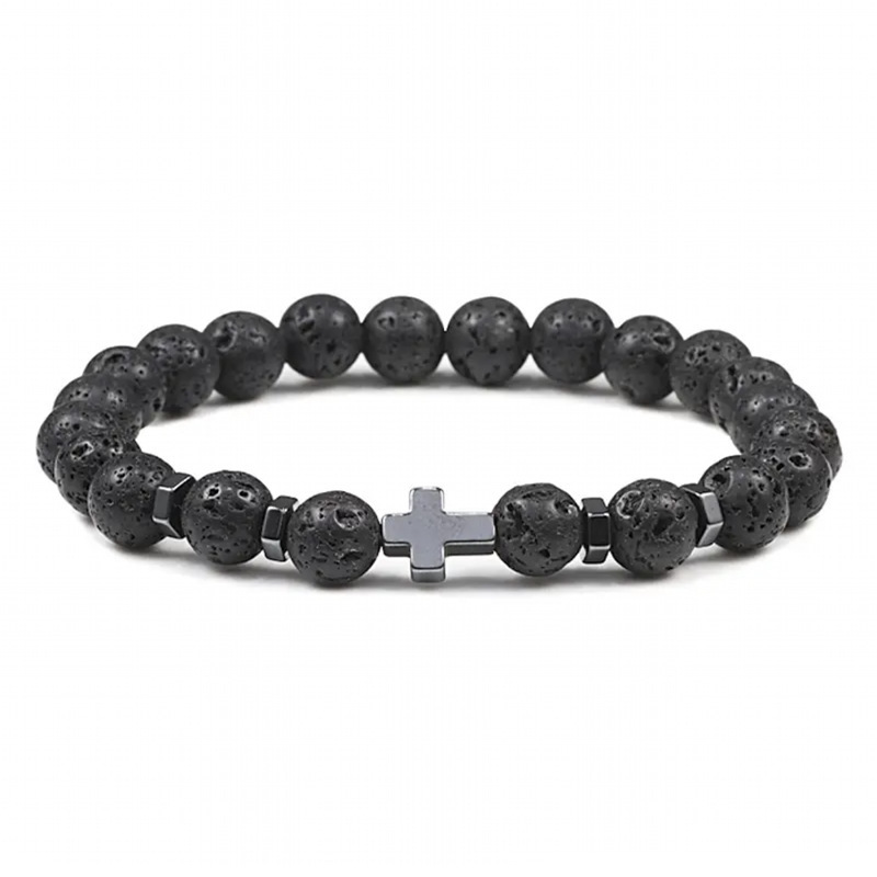 神聖な十字架モチーフを中心に配した魔除けのパワーストーンブレスレットです。 虎目石や溶岩石など厳選された天然石が邪気を払い、持ち主を負のエネルギーから守ります。 十字架の神聖な力と天然石の浄化作用が調和し、日常生活における魔除けとしてお守り代わりに身につけていただけます。 強い守護力を求める方におすすめの一品です。