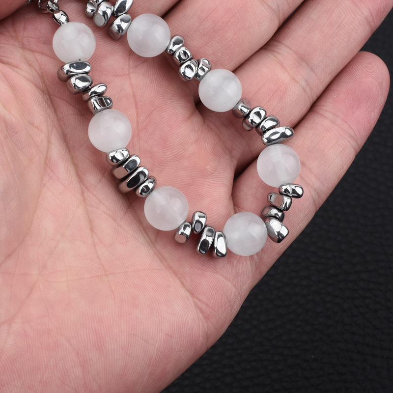 透明感のある天然石と金属製の小粒ビーズを交互に配置したパワーストーンブレスレットです。 健康運を高めるとされる澄んだ石が心身の浄化を促し、日々の疲れやストレスから身を守ります。 調節可能な留め具付きで手首にしっかりフィットし、毎日の健康維持をサポートします。 上品な仕上がりで普段使いにも最適な一品です。