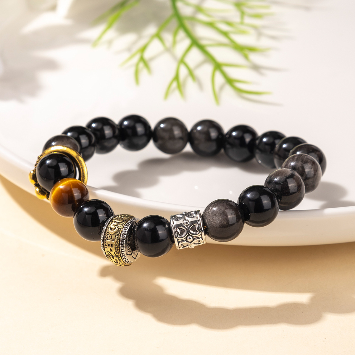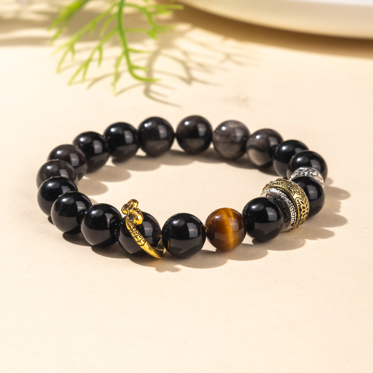 古来より魔除けの力を持つとされる銀曜石のパワーストーンブレスレットです。 繊細な装飾金具といくつかの天然石が輝きを引き立て、邪気を払い持ち主を守護します。 魔除けのお守りとして日常に身につけることで、負のエネルギーから身を守り、心の安定と強さをもたらすとされています。 大切な方への贈り物にも最適な一品です。