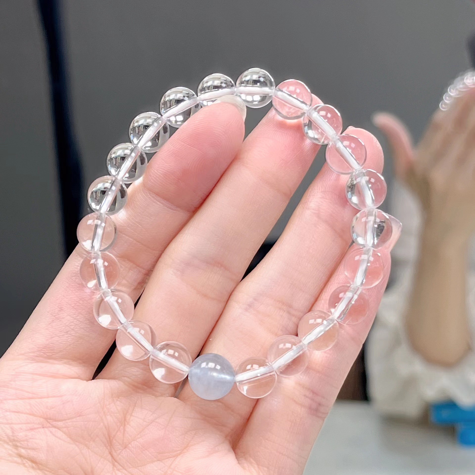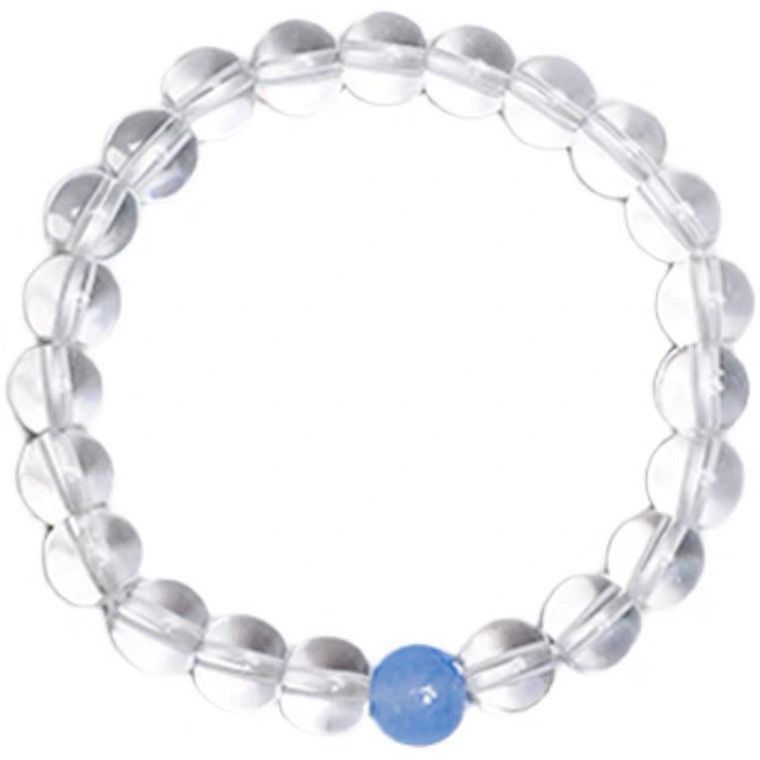 透明感あふれる天然石を丁寧に組み合わせたパワーストーンブレスレットです。 清らかな水晶の輝きが心身を浄化し、開運へと導く力を高めます。 中央に配された優しい天然石が穏やかなエネルギーを放ち、持つ人の運気を上昇させます。 日常に幸運を呼び込みたい方や、新しいスタートを切りたい方におすすめの一品です。 身につけるだけで前向きな気持ちになれる特別な腕輪です。